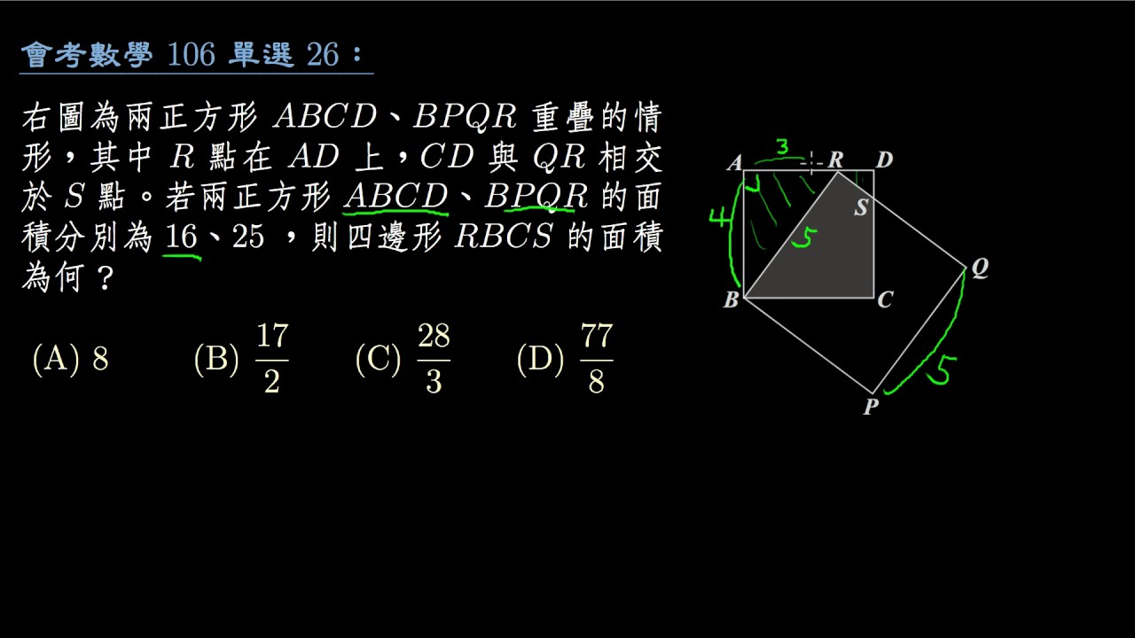 載入中... 相關課程 Back 【會考數學】106 單選26:兩個重疊的正方形 相關課程 0 / 750 登入觀看 ⇐ Use this menu to view and help create subtitles for this video in many different languages. You'll probably want to hide YouTube's captions if using these subtitles. 【會考數學】106 單選26:兩個重疊的正方形 上傳學習單 下載學習單
