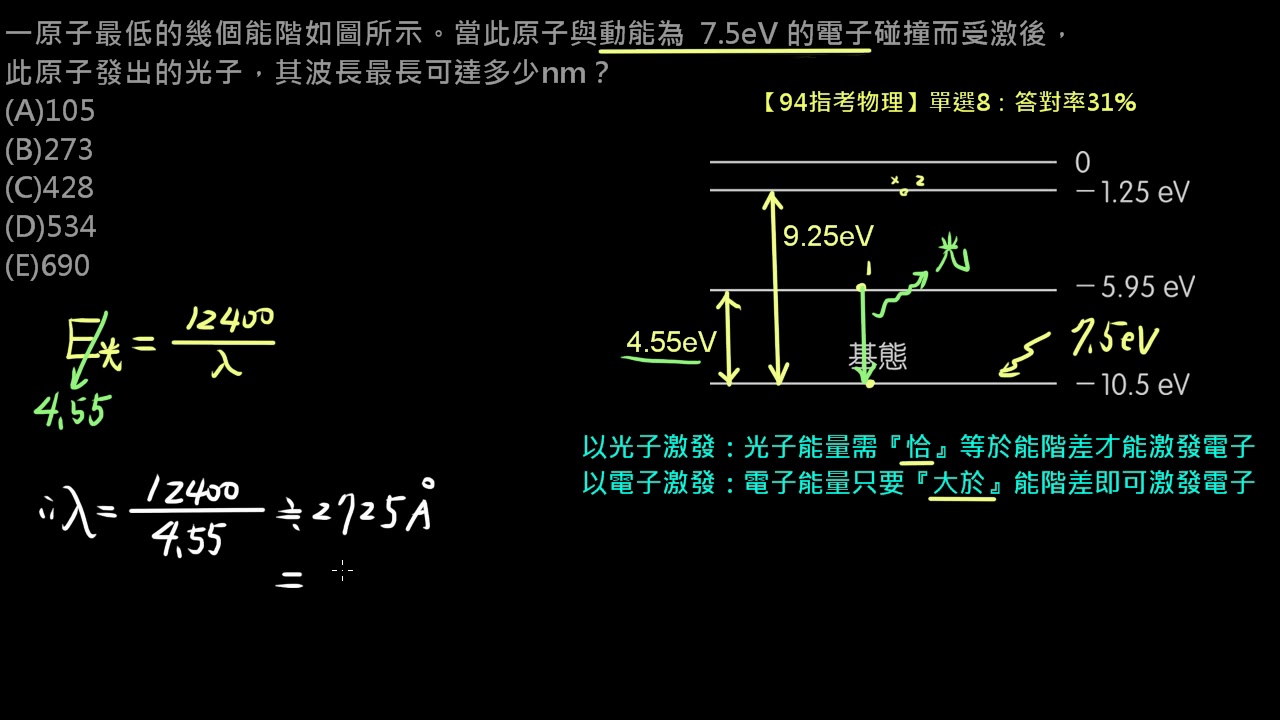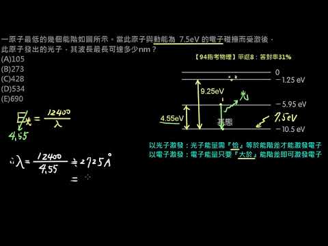 載入中... 相關課程 Back 【例題】【指考物理】94 單選8:能階躍遷-激發方式 相關課程 0 / 750 登入觀看 ⇐ Use this menu to view and help create subtitles for this video in many different languages. You'll probably want to hide YouTube's captions if using these subtitles. 【例題】【指考物理】94 單選8:能階躍遷-激發方式 上傳學習單 下載學習單