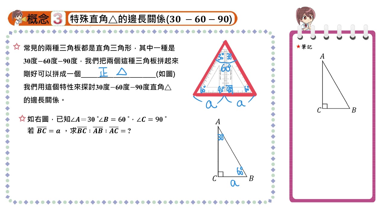 載入中... 相關課程 Back 【觀念】特殊直角三角形的邊長關係(30-60-90) 1 相關課程 0 / 750 登入觀看 ⇐ Use this menu to view and help create subtitles for this video in many different languages. You'll probably want to hide YouTube's captions if using these subtitles. 【觀念】特殊直角三角形的邊長關係(30-60-90) 1 上傳學習單 下載學習單