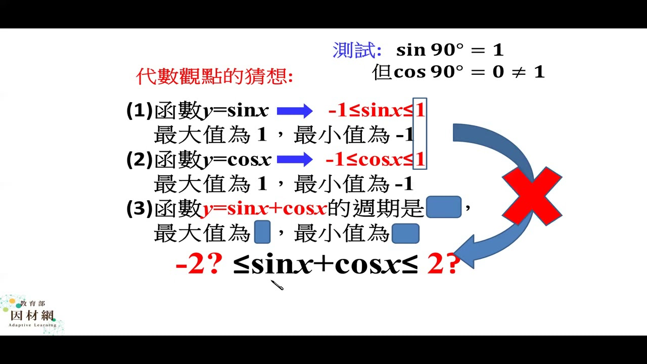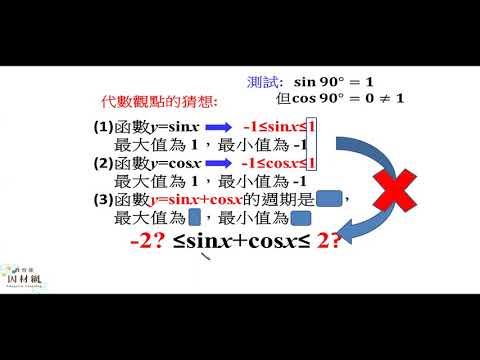 載入中... 相關課程 Back F-11A-2-S01_能從代數及幾何觀點探索sinx+cosx的極值 相關課程 0 / 750 登入觀看 ⇐ Use this menu to view and help create subtitles for this video in many different languages. You'll probably want to hide YouTube's captions if using these subtitles. F-11A-2-S01_能從代數及幾何觀點探索sinx+cosx的極值 上傳學習單 下載學習單