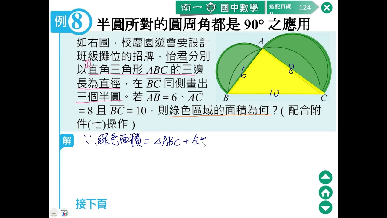載入中... 相關課程 Back 【解題】半圓的圓周角應用 1 相關課程 0 / 750 登入觀看 ⇐ Use this menu to view and help create subtitles for this video in many different languages. You'll probably want to hide YouTube's captions if using these subtitles. 【解題】半圓的圓周角應用 1 : 影片勘誤:第二行的算式應為(6×8)/2+(3²×π)/2+(4²×π)/2-(5²×π)/2 上傳學習單 下載學習單