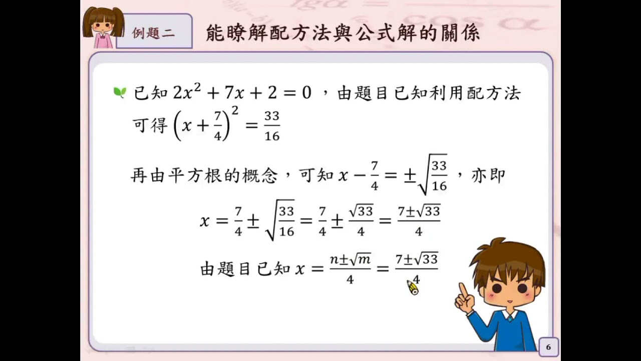 載入中... 相關課程 Back A-8-7-S08_能以配方法導出一元二次方程式的公式解。 相關課程 0 / 750 登入觀看 ⇐ Use this menu to view and help create subtitles for this video in many different languages. You'll probably want to hide YouTube's captions if using these subtitles. A-8-7-S08_能以配方法導出一元二次方程式的公式解。 上傳學習單 下載學習單