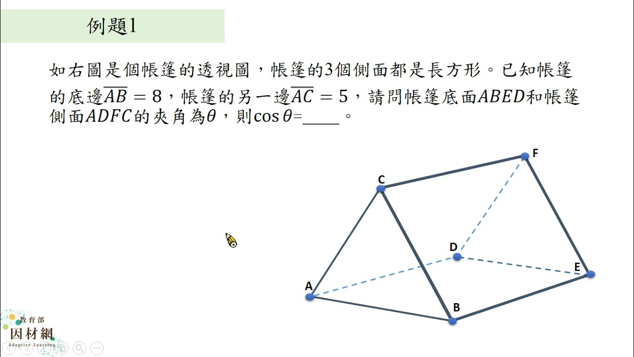 載入中... 相關課程 Back S-11A-1-S05_能認識空間中平面與平面的關係,並能計算兩面角的夾角餘弦值 相關課程 0 / 750 登入觀看 ⇐ Use this menu to view and help create subtitles for this video in many different languages. You'll probably want to hide YouTube's captions if using these subtitles. S-11A-1-S05_能認識空間中平面與平面的關係,並能計算兩面角的夾角餘弦值 上傳學習單 下載學習單