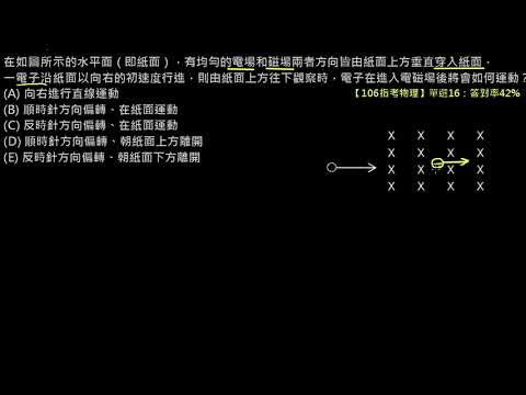 載入中... 相關課程 Back 【例題】【指考物理】106 單選16:帶電質點在電場與磁場中的運動 相關課程 0 / 750 登入觀看 ⇐ Use this menu to view and help create subtitles for this video in many different languages. You'll probably want to hide YouTube's captions if using these subtitles. 【例題】【指考物理】106 單選16:帶電質點在電場與磁場中的運動 上傳學習單 下載學習單