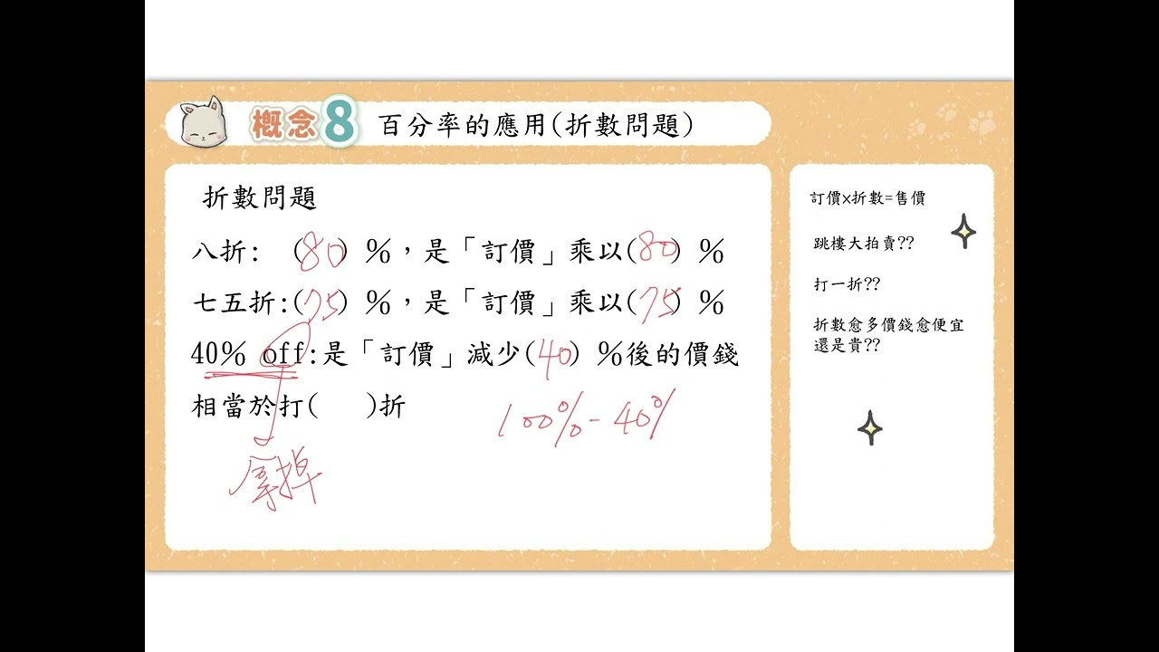 載入中... 相關課程 Back 五下 單元8 16 概念8 百分率的應用(折數問題) 相關課程 0 / 750 登入觀看 ⇐ Use this menu to view and help create subtitles for this video in many different languages. You'll probably want to hide YouTube's captions if using these subtitles. 五下 單元8 16 概念8 百分率的應用(折數問題) 上傳學習單 下載學習單