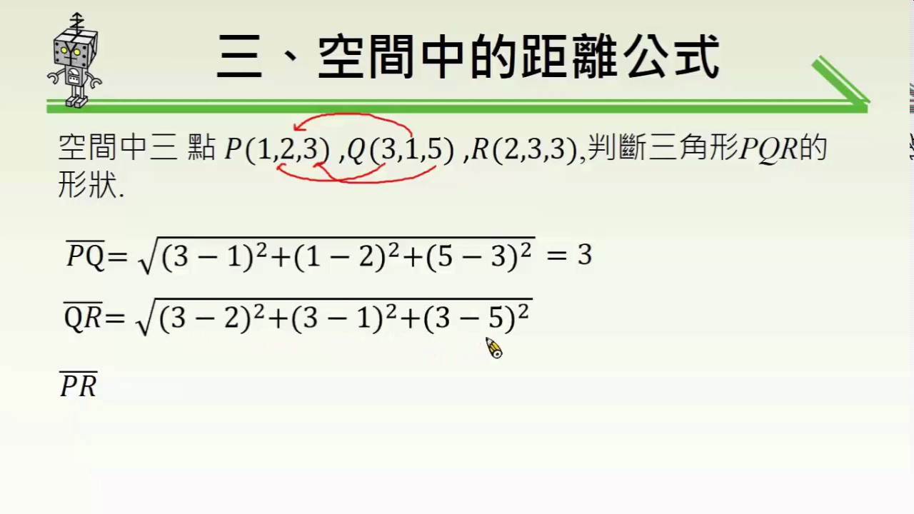 載入中... 相關課程 Back 【例題】空間中二點的距離公式 #1:判斷三角形形狀 相關課程 0 / 750 登入觀看 ⇐ Use this menu to view and help create subtitles for this video in many different languages. You'll probably want to hide YouTube's captions if using these subtitles. 【例題】空間中二點的距離公式 #1:判斷三角形形狀 上傳學習單 下載學習單
