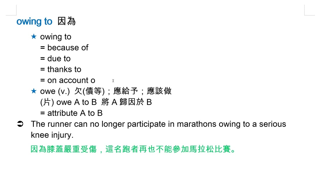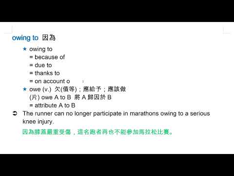 載入中... 相關課程 Back owing to 因為 相關課程 0 / 750 登入觀看 ⇐ Use this menu to view and help create subtitles for this video in many different languages. You'll probably want to hide YouTube's captions if using these subtitles. owing to 因為 上傳學習單 下載學習單