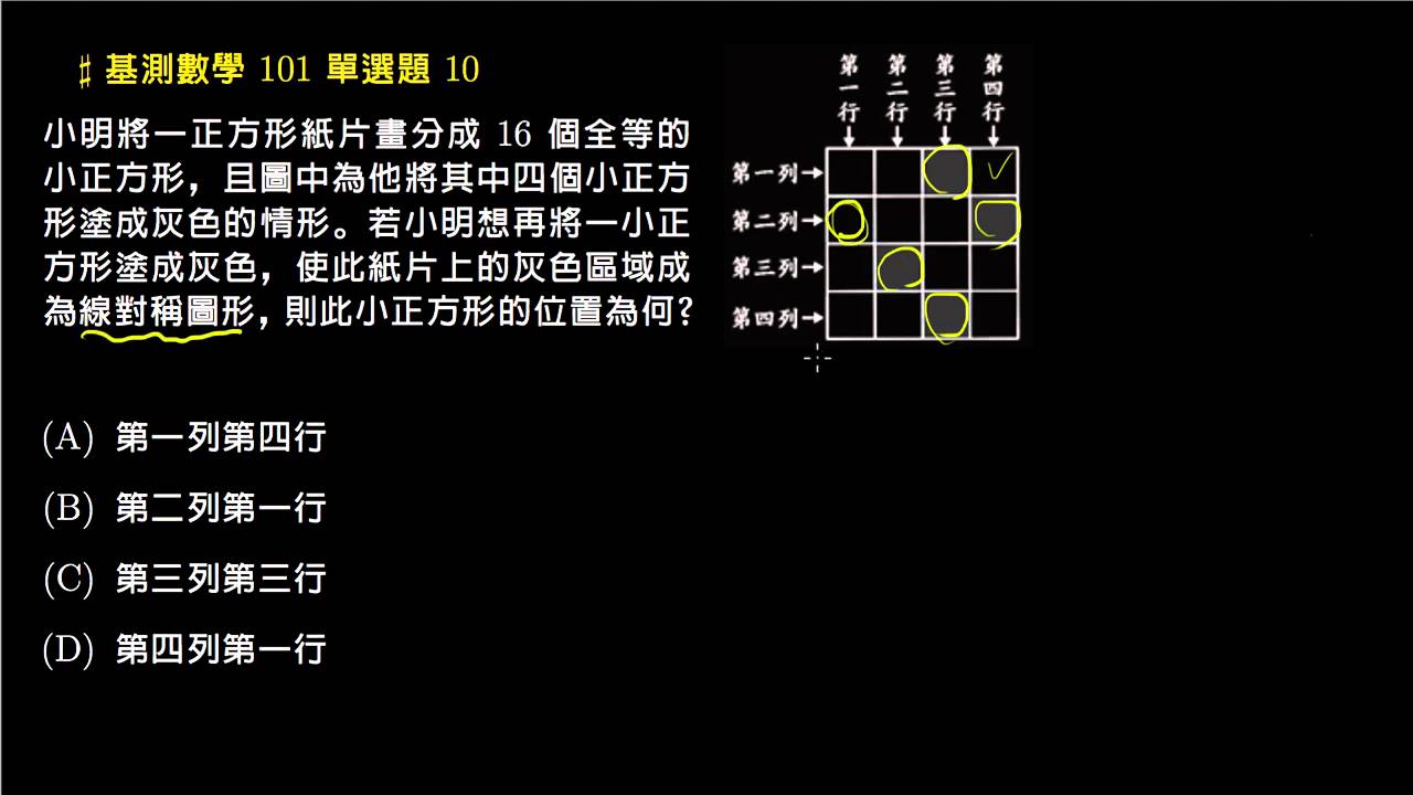 【基測數學】101 單選10:線對稱與方格