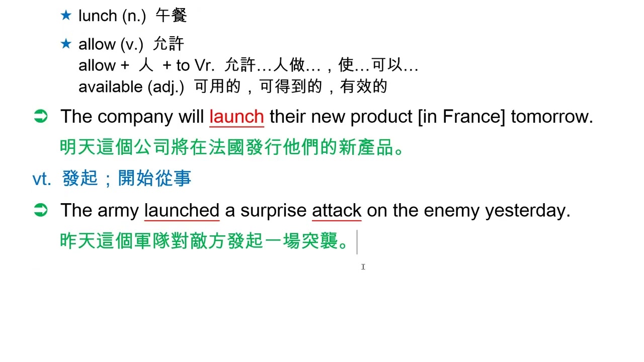 載入中... 相關課程 Back launch [lɔntʃ] vt. 發行 相關課程 0 / 750 登入觀看 ⇐ Use this menu to view and help create subtitles for this video in many different languages. You'll probably want to hide YouTube's captions if using these subtitles. launch [lɔntʃ] vt. 發行 上傳學習單 下載學習單
