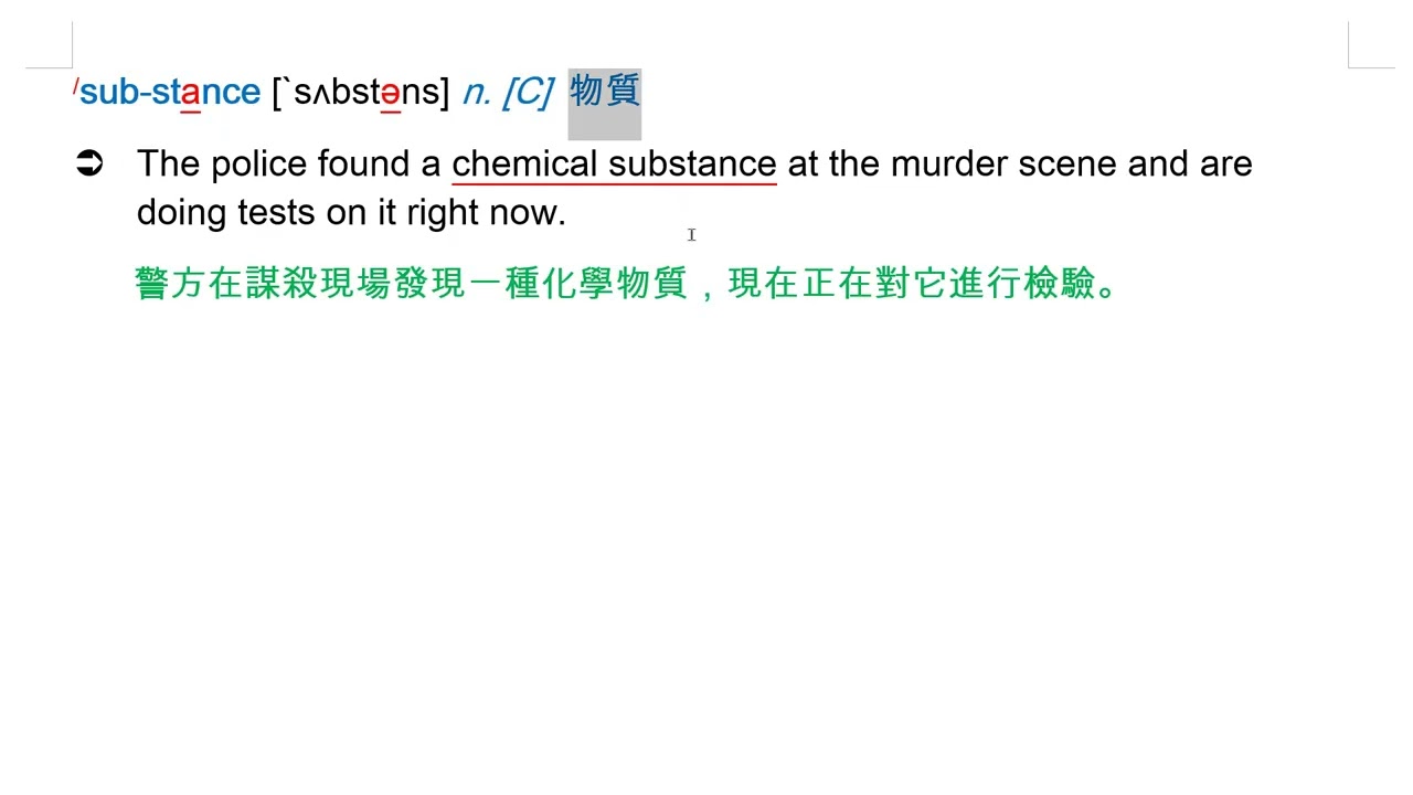 載入中... 相關課程 Back substance [`sʌbstəns] n. [C] 物質 相關課程 0 / 750 登入觀看 ⇐ Use this menu to view and help create subtitles for this video in many different languages. You'll probably want to hide YouTube's captions if using these subtitles. substance [`sʌbstəns] n. [C] 物質 上傳學習單 下載學習單