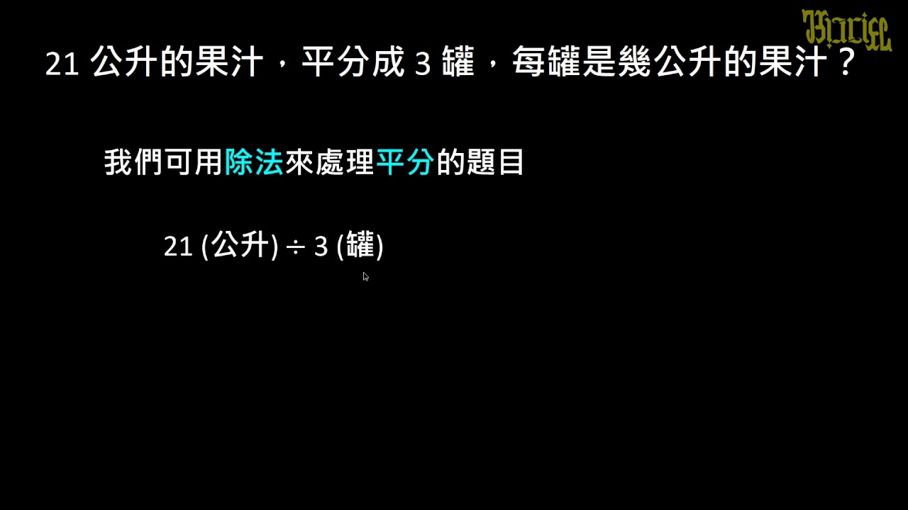 載入中... 相關課程 Back 【例題】除法算式解題:容量分裝 相關課程 0 / 750 登入觀看 ⇐ Use this menu to view and help create subtitles for this video in many different languages. You'll probably want to hide YouTube's captions if using these subtitles. 【例題】除法算式解題:容量分裝 上傳學習單 下載學習單