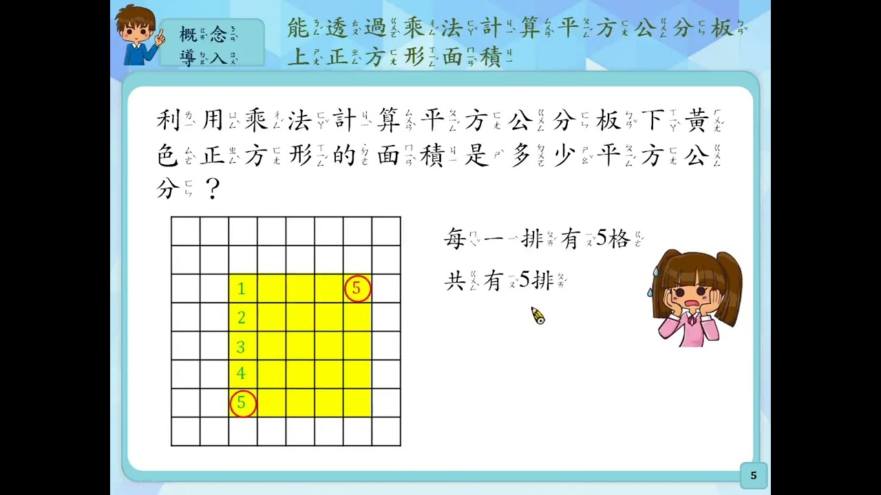 載入中... 相關課程 Back N-3-14-S03 能透過乘法計算平方公分板上正方形或長方形的面積 相關課程 0 / 750 登入觀看 ⇐ Use this menu to view and help create subtitles for this video in many different languages. You'll probably want to hide YouTube's captions if using these subtitles. N-3-14-S03 能透過乘法計算平方公分板上正方形或長方形的面積 上傳學習單 下載學習單