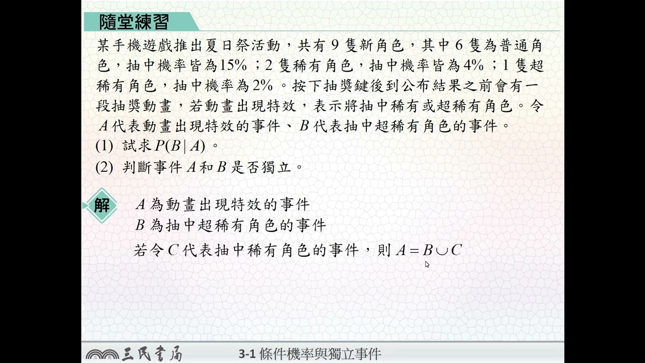 載入中... 相關課程 Back 【解題】獨立事件的判斷 2 相關課程 0 / 750 登入觀看 ⇐ Use this menu to view and help create subtitles for this video in many different languages. You'll probably want to hide YouTube's captions if using these subtitles. 【解題】獨立事件的判斷 2 上傳學習單 下載學習單
