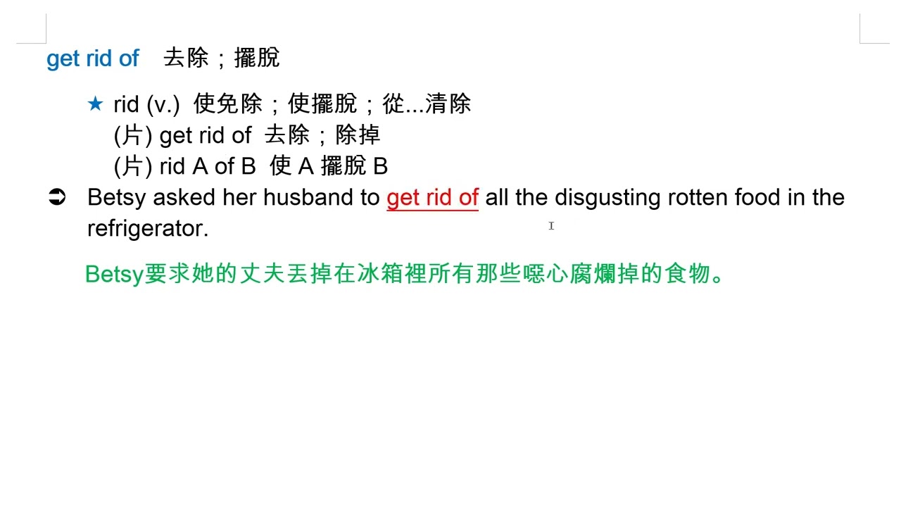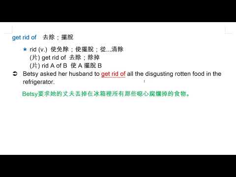 載入中... 相關課程 Back get rid of 去除;擺脫 相關課程 0 / 750 登入觀看 ⇐ Use this menu to view and help create subtitles for this video in many different languages. You'll probably want to hide YouTube's captions if using these subtitles. get rid of 去除;擺脫 上傳學習單 下載學習單
