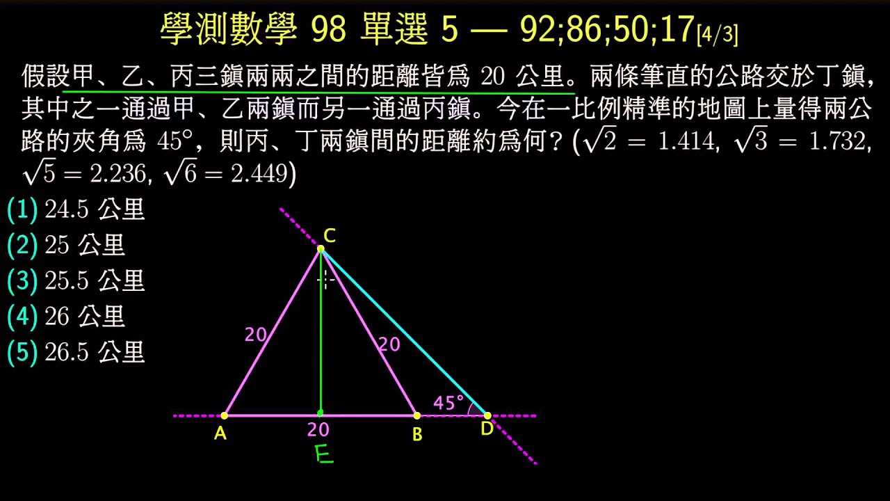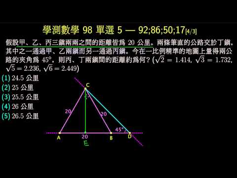載入中... 相關課程 Back 學測數學98_單選5_四鎮兩公路求距離 相關課程 0 / 750 登入觀看 ⇐ Use this menu to view and help create subtitles for this video in many different languages. You'll probably want to hide YouTube's captions if using these subtitles. 學測數學98_單選5_四鎮兩公路求距離 上傳學習單 下載學習單