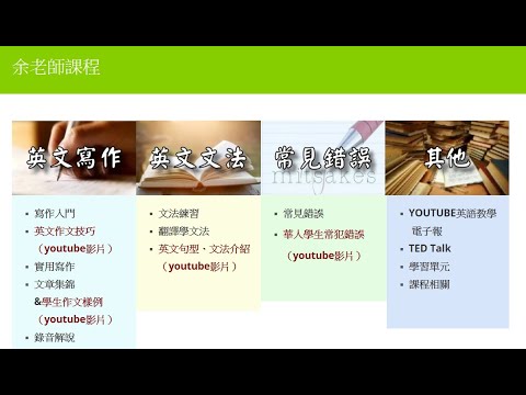載入中... 相關課程 Back 改正常犯錯誤系列五:寫英文時常犯錯誤 相關課程 0 / 750 登入觀看 ⇐ Use this menu to view and help create subtitles for this video in many different languages. You'll probably want to hide YouTube's captions if using these subtitles. 改正常犯錯誤系列五:寫英文時常犯錯誤 上傳學習單 下載學習單