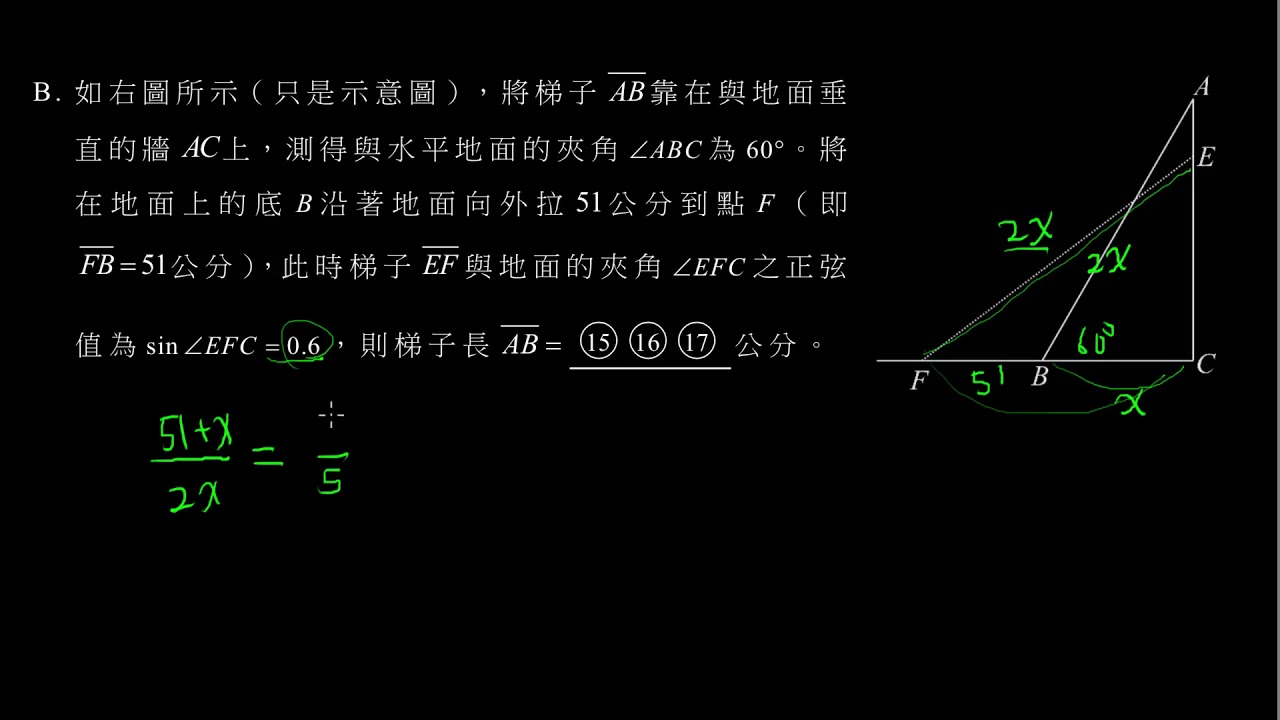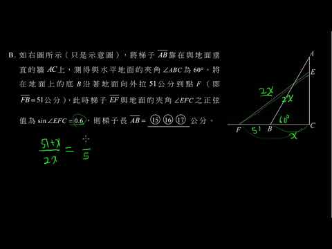 載入中... 相關課程 Back 學測107 填充B:靠牆的梯長 相關課程 0 / 750 登入觀看 ⇐ Use this menu to view and help create subtitles for this video in many different languages. You'll probably want to hide YouTube's captions if using these subtitles. 學測107 填充B:靠牆的梯長 上傳學習單 下載學習單