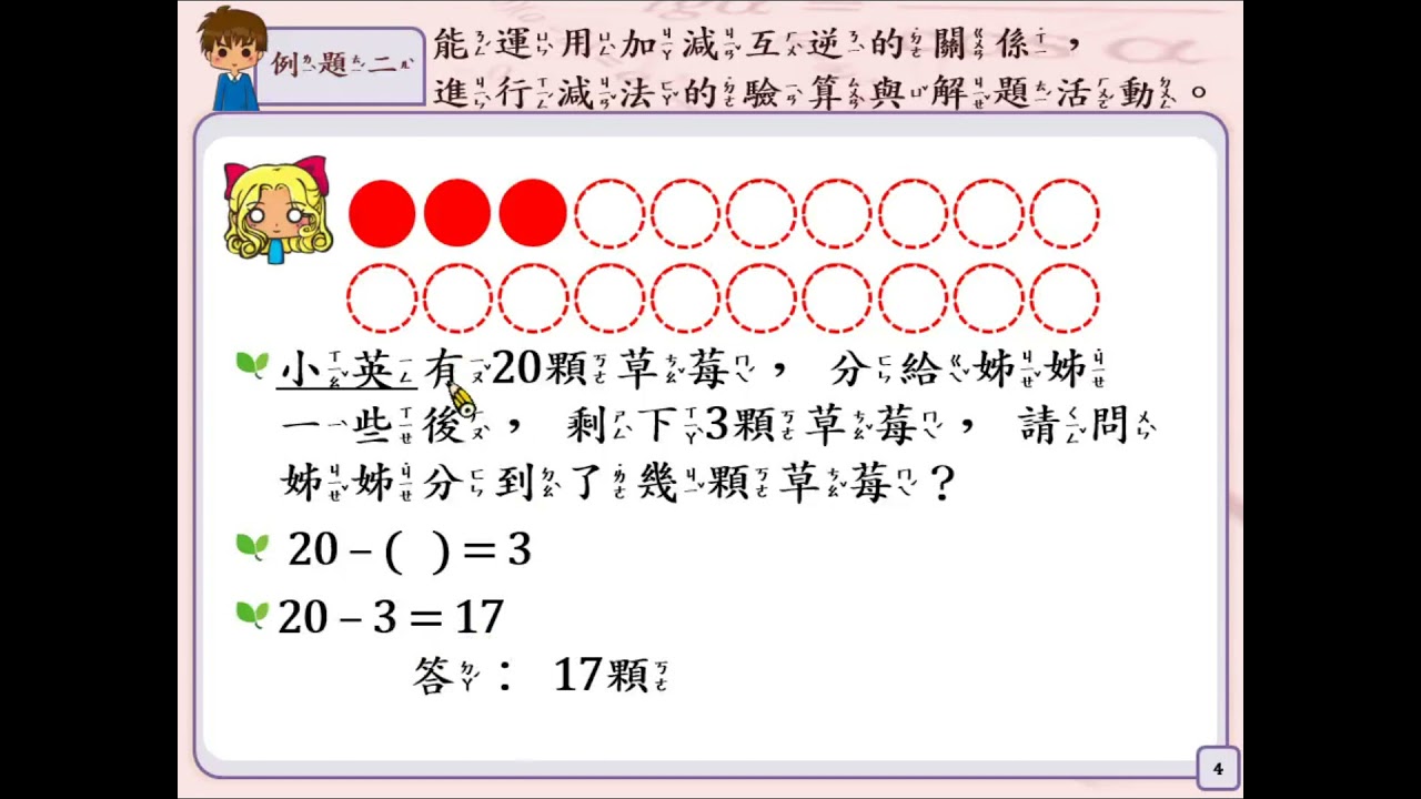 載入中... 相關課程 Back 【解題】能運用加減互逆的關係,進行減法的驗算與解題活動 相關課程 0 / 750 登入觀看 ⇐ Use this menu to view and help create subtitles for this video in many different languages. You'll probably want to hide YouTube's captions if using these subtitles. 【解題】能運用加減互逆的關係,進行減法的驗算與解題活動 上傳學習單 下載學習單