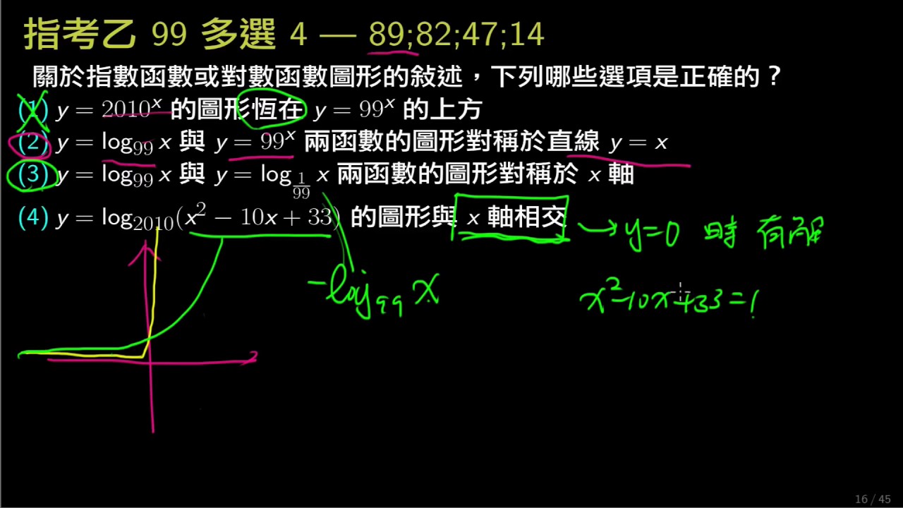 載入中... 相關課程 Back 【數乙】099 多選4:指對數函數圖形的對稱性 相關課程 0 / 750 登入觀看 ⇐ Use this menu to view and help create subtitles for this video in many different languages. You'll probably want to hide YouTube's captions if using these subtitles. 【數乙】099 多選4:指對數函數圖形的對稱性 上傳學習單 下載學習單