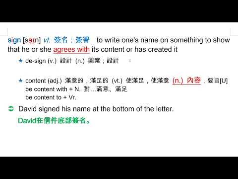 載入中... 相關課程 Back sign [saɪn] vt. 簽名;簽署 相關課程 0 / 750 登入觀看 ⇐ Use this menu to view and help create subtitles for this video in many different languages. You'll probably want to hide YouTube's captions if using these subtitles. sign [saɪn] vt. 簽名;簽署 上傳學習單 下載學習單