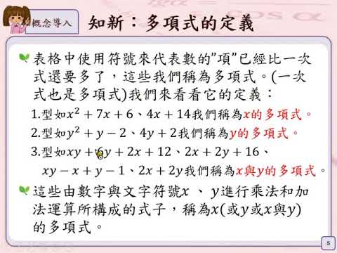 載入中... 相關課程 Back A-8-2-S01_能理解一元多項式的定義及相關名詞。 相關課程 0 / 750 登入觀看 ⇐ Use this menu to view and help create subtitles for this video in many different languages. You'll probably want to hide YouTube's captions if using these subtitles. A-8-2-S01_能理解一元多項式的定義及相關名詞。 上傳學習單 下載學習單