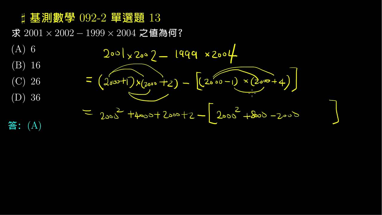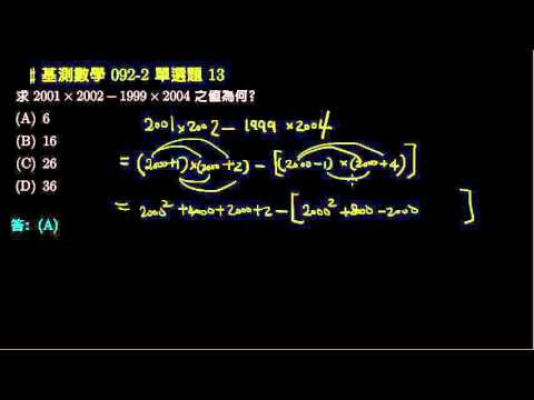 載入中... 相關課程 Back 【基測數學】92v2 單選13:利用乘法公式計算 相關課程 0 / 750 登入觀看 ⇐ Use this menu to view and help create subtitles for this video in many different languages. You'll probably want to hide YouTube's captions if using these subtitles. 【基測數學】92v2 單選13:利用乘法公式計算 上傳學習單 下載學習單