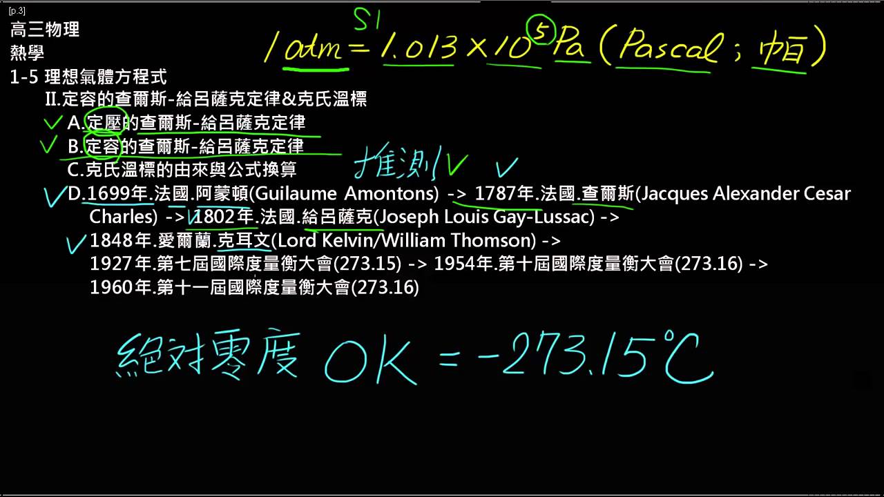 載入中... 相關課程 Back 高三上物理1-5理想氣體方程式(5):絕對溫度0K=攝氏-273.15度 相關課程 0 / 750 登入觀看 ⇐ Use this menu to view and help create subtitles for this video in many different languages. You'll probably want to hide YouTube's captions if using these subtitles. 高三上物理1-5理想氣體方程式(5):絕對溫度0K=攝氏-273.15度 : 絕對零度0K = 273 15度攝氏 上傳學習單 下載學習單