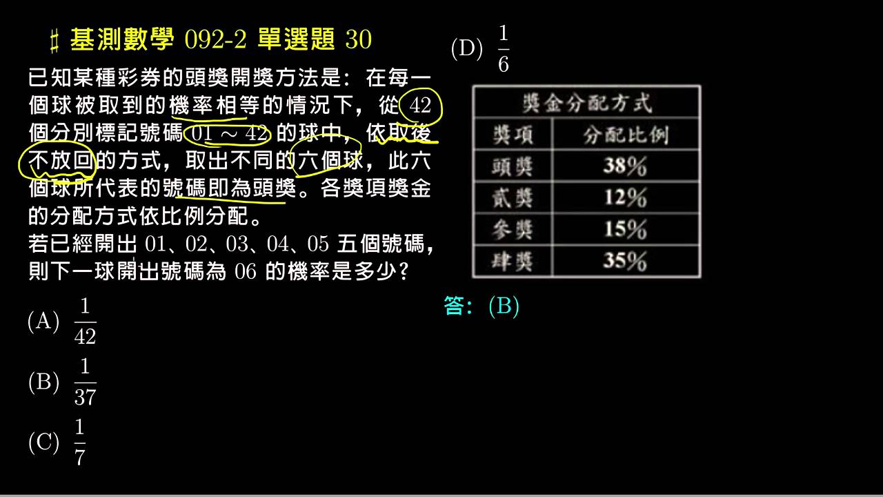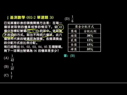 載入中... 相關課程 Back 【基測數學】92v2 單選30:機率 相關課程 0 / 750 登入觀看 ⇐ Use this menu to view and help create subtitles for this video in many different languages. You'll probably want to hide YouTube's captions if using these subtitles. 【基測數學】92v2 單選30:機率 上傳學習單 下載學習單