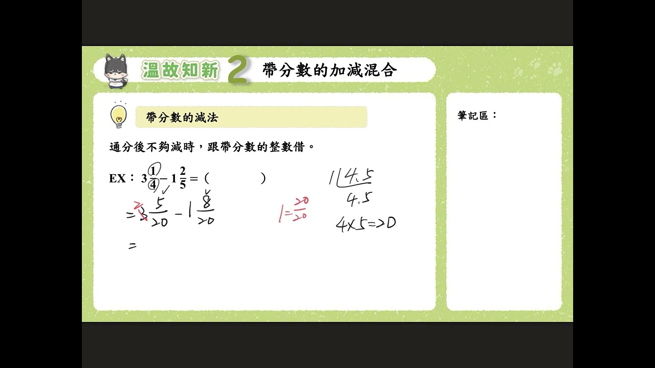 載入中... 相關課程 Back 溫故知新2 帶分數的加減混合 相關課程 0 / 750 登入觀看 ⇐ Use this menu to view and help create subtitles for this video in many different languages. You'll probably want to hide YouTube's captions if using these subtitles. 溫故知新2 帶分數的加減混合 上傳學習單 下載學習單