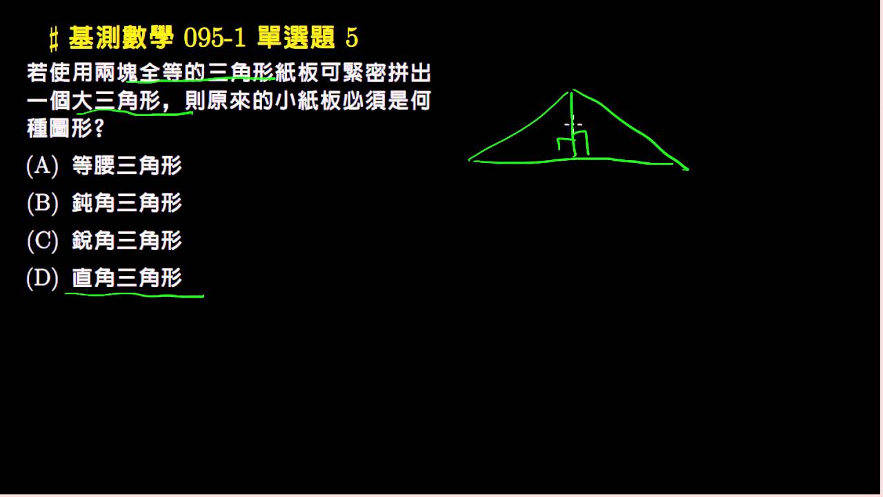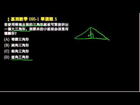 載入中... 相關課程 Back 【基測數學】95v1 單選05:兩三角形的組合 相關課程 0 / 750 登入觀看 ⇐ Use this menu to view and help create subtitles for this video in many different languages. You'll probably want to hide YouTube's captions if using these subtitles. 【基測數學】95v1 單選05:兩三角形的組合 上傳學習單 下載學習單