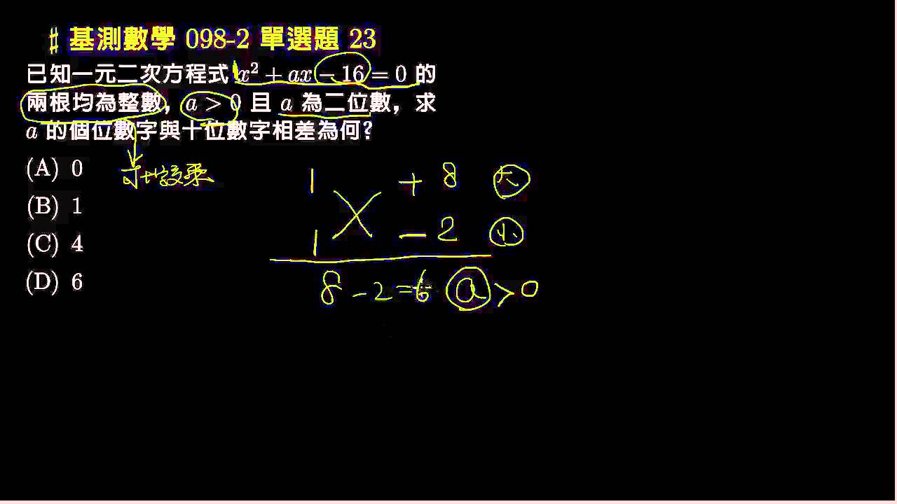 載入中... 相關課程 Back 【基測數學】98v2 單選23:十字交乘法解一元二次方程式 相關課程 0 / 750 登入觀看 ⇐ Use this menu to view and help create subtitles for this video in many different languages. You'll probably want to hide YouTube's captions if using these subtitles. 【基測數學】98v2 單選23:十字交乘法解一元二次方程式 上傳學習單 下載學習單