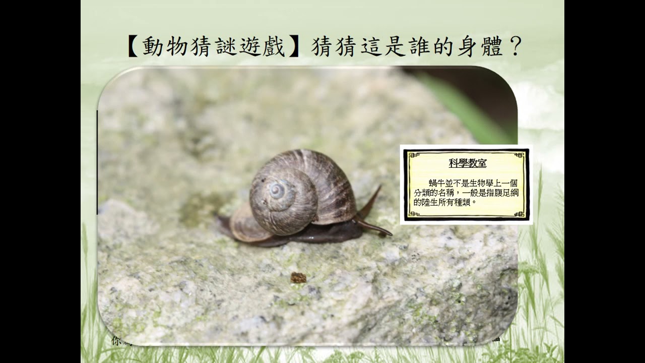 載入中... 相關課程 Back 【暖身】動物的身體構造 相關課程 0 / 750 登入觀看 ⇐ Use this menu to view and help create subtitles for this video in many different languages. You'll probably want to hide YouTube's captions if using these subtitles. 【暖身】動物的身體構造 上傳學習單 下載學習單