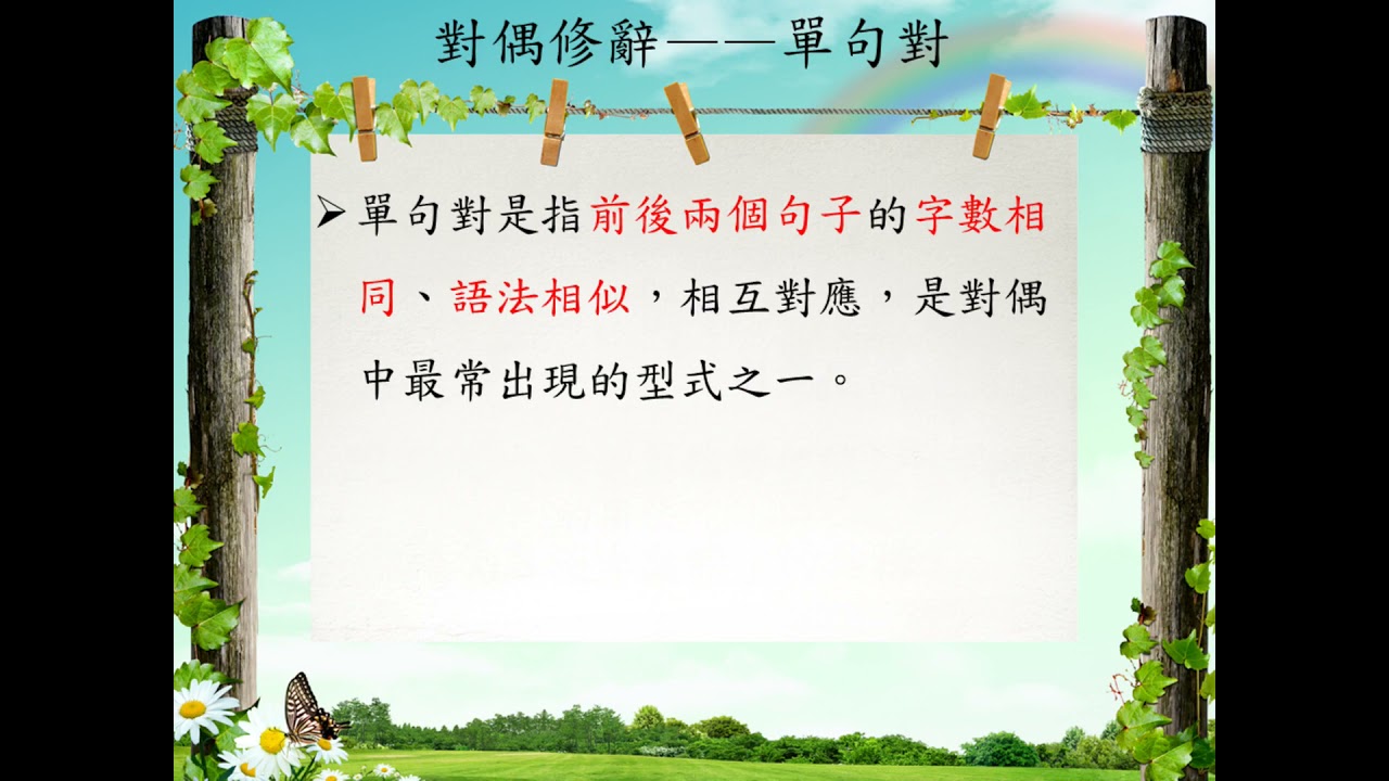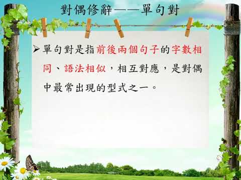 載入中... 相關課程 Back 修辭[七]/對偶 相關課程 0 / 750 登入觀看 ⇐ Use this menu to view and help create subtitles for this video in many different languages. You'll probably want to hide YouTube's captions if using these subtitles. 修辭[七]/對偶 上傳學習單 下載學習單