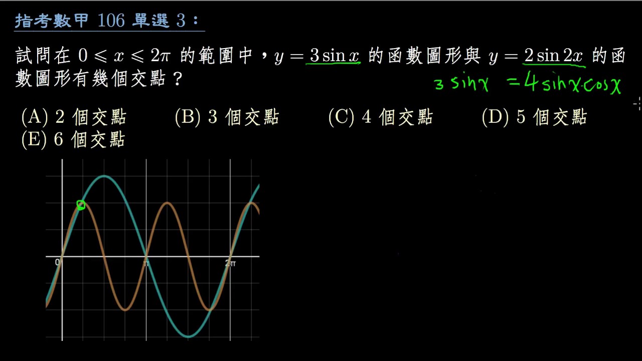 載入中... 相關課程 Back 【指考數甲】106 單選3:三角函數的交點 相關課程 0 / 750 登入觀看 ⇐ Use this menu to view and help create subtitles for this video in many different languages. You'll probably want to hide YouTube's captions if using these subtitles. 【指考數甲】106 單選3:三角函數的交點 上傳學習單 下載學習單