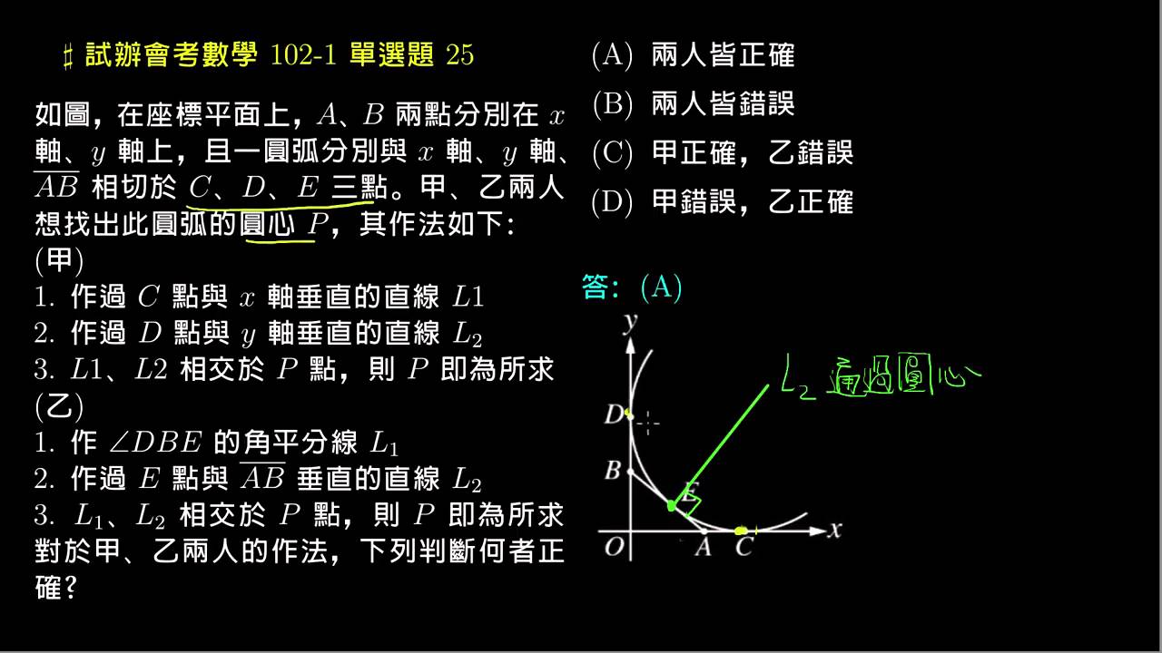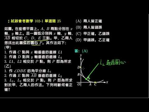 載入中... 相關課程 Back 【試辦會考數學】102 單選25:圓的切線 相關課程 0 / 750 登入觀看 ⇐ Use this menu to view and help create subtitles for this video in many different languages. You'll probably want to hide YouTube's captions if using these subtitles. 【試辦會考數學】102 單選25:圓的切線 上傳學習單 下載學習單