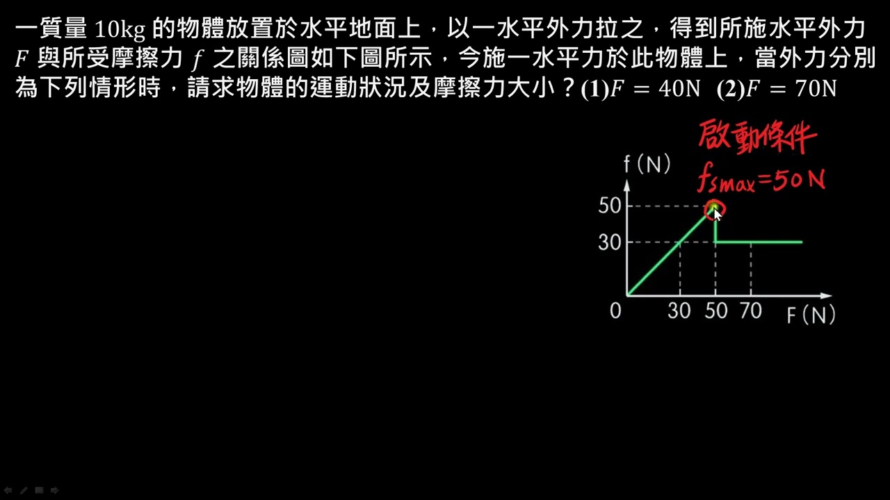 載入中... 相關課程 Back 【例題】粗糙水平面上受不同拉力時之運動狀態判斷 相關課程 0 / 750 登入觀看 ⇐ Use this menu to view and help create subtitles for this video in many different languages. You'll probably want to hide YouTube's captions if using these subtitles. 【例題】粗糙水平面上受不同拉力時之運動狀態判斷 上傳學習單 下載學習單