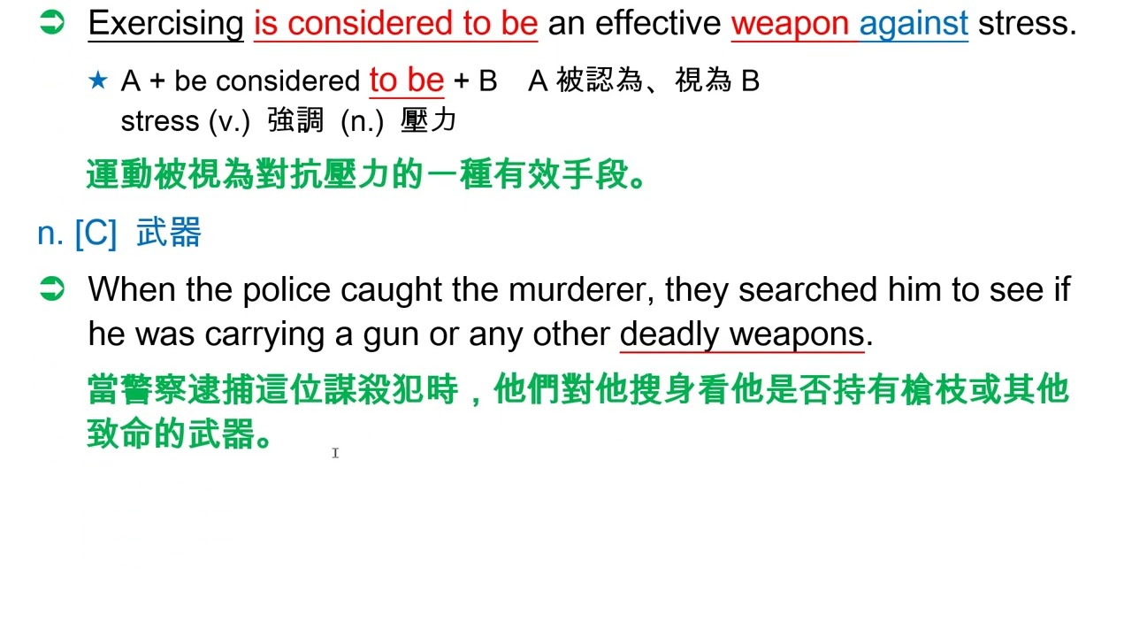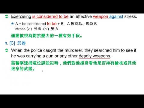 載入中... 相關課程 Back weapon [`wɛpən] n. [C] 手段 相關課程 0 / 750 登入觀看 ⇐ Use this menu to view and help create subtitles for this video in many different languages. You'll probably want to hide YouTube's captions if using these subtitles. weapon [`wɛpən] n. [C] 手段 上傳學習單 下載學習單