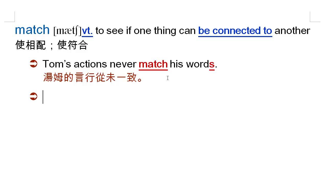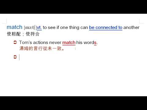 載入中... 相關課程 Back match: 使相配, 使符合, 火柴 相關課程 0 / 750 登入觀看 ⇐ Use this menu to view and help create subtitles for this video in many different languages. You'll probably want to hide YouTube's captions if using these subtitles. match: 使相配, 使符合, 火柴 上傳學習單 下載學習單