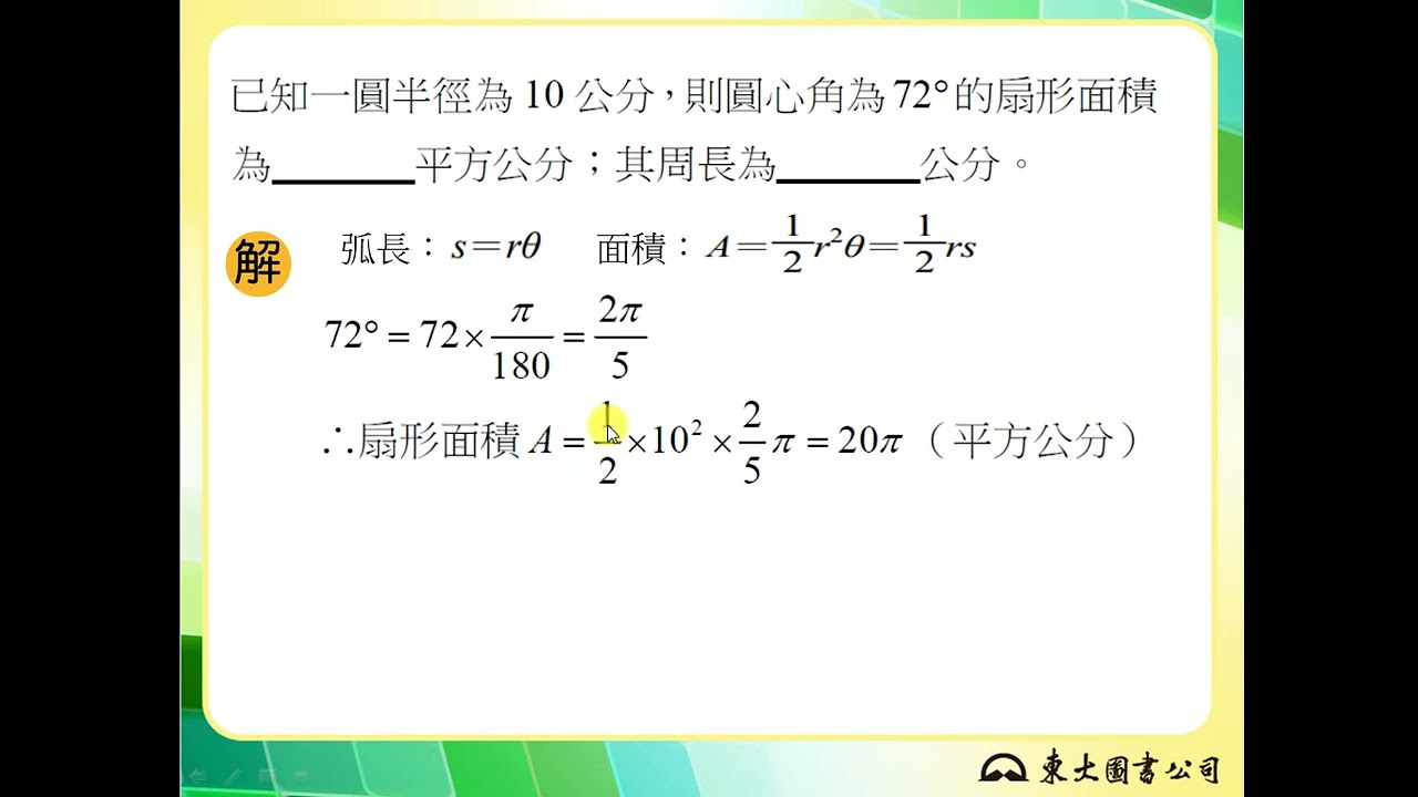 載入中... 相關課程 Back 【解題】求扇形的弧長與面積 相關課程 0 / 750 登入觀看 ⇐ Use this menu to view and help create subtitles for this video in many different languages. You'll probably want to hide YouTube's captions if using these subtitles. 【解題】求扇形的弧長與面積 上傳學習單 下載學習單