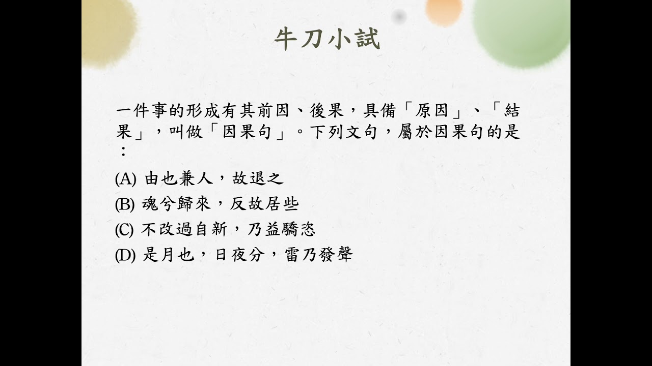 載入中... 相關課程 Back 語法[十一]/因果句 相關課程 0 / 750 登入觀看 ⇐ Use this menu to view and help create subtitles for this video in many different languages. You'll probably want to hide YouTube's captions if using these subtitles. 語法[十一]/因果句 上傳學習單 下載學習單