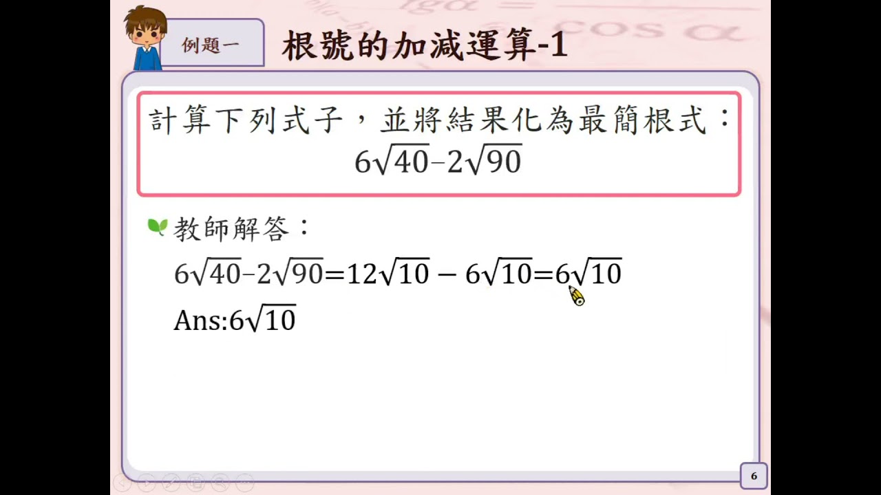載入中... 相關課程 Back N-8-1-S13_能做純根號的化簡,並做簡單的根號加減運算。 相關課程 0 / 750 登入觀看 ⇐ Use this menu to view and help create subtitles for this video in many different languages. You'll probably want to hide YouTube's captions if using these subtitles. N-8-1-S13_能做純根號的化簡,並做簡單的根號加減運算。 上傳學習單 下載學習單