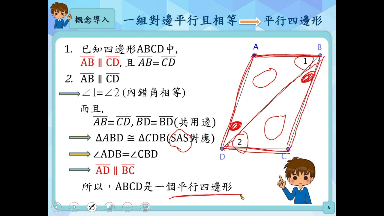 載入中... 相關課程 Back S-8-9-S04_能利用平行四邊形的判別性質,判斷四邊形是否為平行四邊形。 相關課程 0 / 750 登入觀看 ⇐ Use this menu to view and help create subtitles for this video in many different languages. You'll probably want to hide YouTube's captions if using these subtitles. S-8-9-S04_能利用平行四邊形的判別性質,判斷四邊形是否為平行四邊形。 上傳學習單 下載學習單