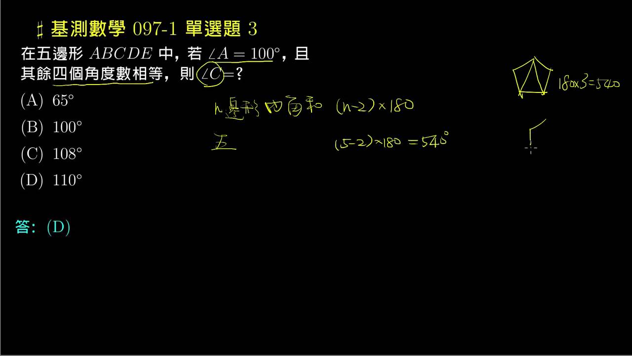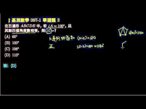 載入中... 相關課程 Back 【基測數學】97v1 單選03:五邊形內角和 相關課程 0 / 750 登入觀看 ⇐ Use this menu to view and help create subtitles for this video in many different languages. You'll probably want to hide YouTube's captions if using these subtitles. 【基測數學】97v1 單選03:五邊形內角和 上傳學習單 下載學習單