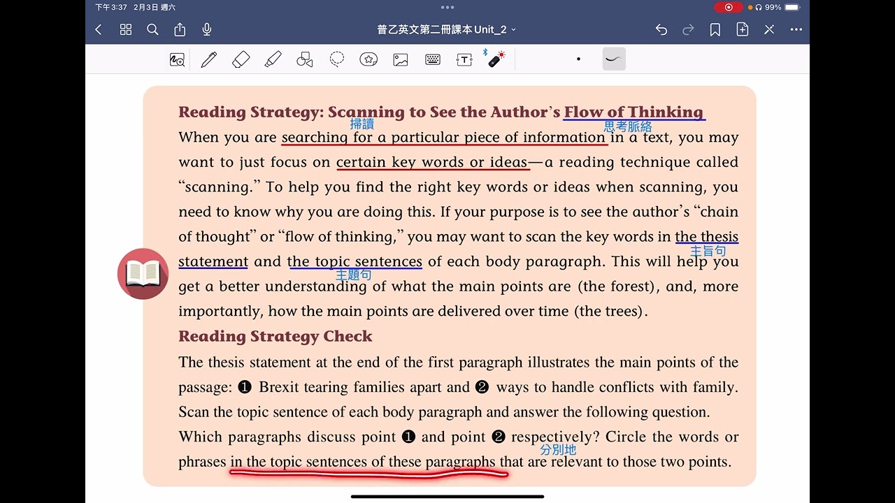 載入中... 相關課程 Back B2U2 課文閱讀策略講解影片2 相關課程 0 / 750 登入觀看 ⇐ Use this menu to view and help create subtitles for this video in many different languages. You'll probably want to hide YouTube's captions if using these subtitles. B2U2 課文閱讀策略講解影片2 上傳學習單 下載學習單