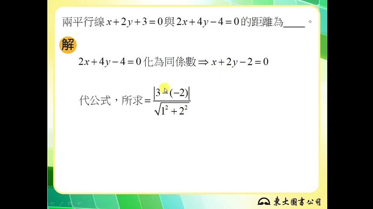 載入中... 相關課程 Back 【解題】兩平行線的距離公式1 相關課程 0 / 750 登入觀看 ⇐ Use this menu to view and help create subtitles for this video in many different languages. You'll probably want to hide YouTube's captions if using these subtitles. 【解題】兩平行線的距離公式1 上傳學習單 下載學習單