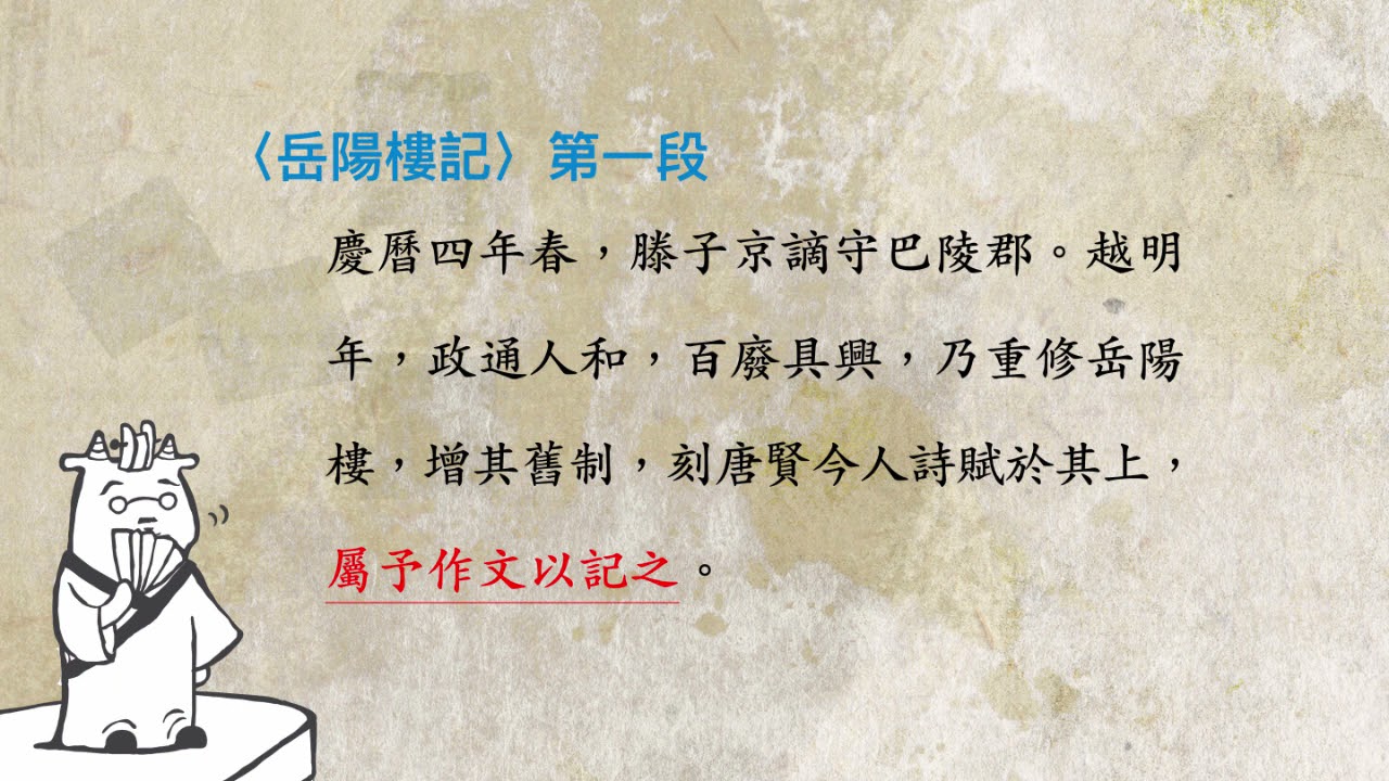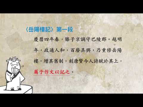 載入中... 相關課程 Back 岳陽樓記:范仲淹與岳陽樓記 相關課程 0 / 750 登入觀看 ⇐ Use this menu to view and help create subtitles for this video in many different languages. You'll probably want to hide YouTube's captions if using these subtitles. 岳陽樓記:范仲淹與岳陽樓記 上傳學習單 下載學習單