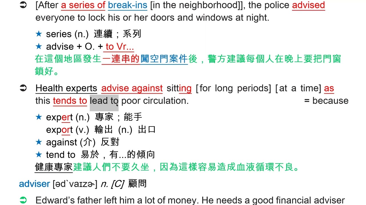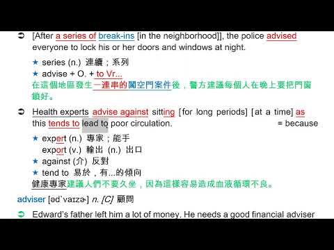 載入中... 相關課程 Back advice [əd`vaɪs] n. [U] 忠告;建議 相關課程 0 / 750 登入觀看 ⇐ Use this menu to view and help create subtitles for this video in many different languages. You'll probably want to hide YouTube's captions if using these subtitles. advice [əd`vaɪs] n. [U] 忠告;建議 上傳學習單 下載學習單