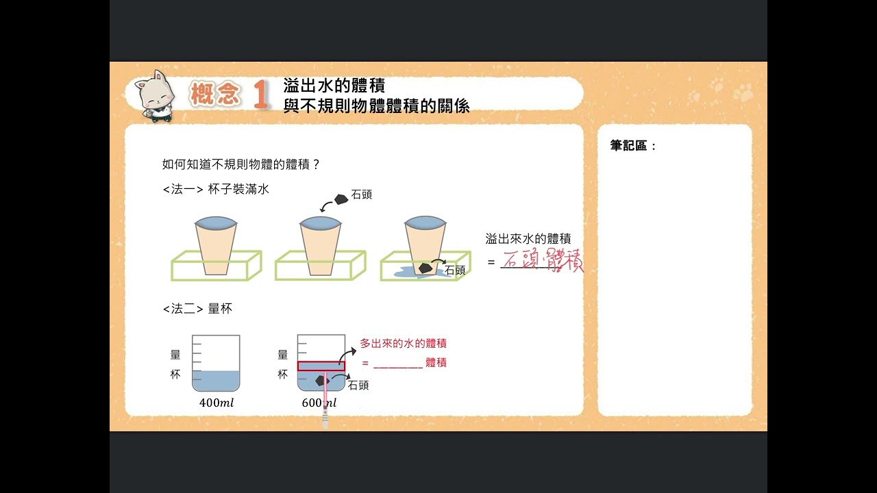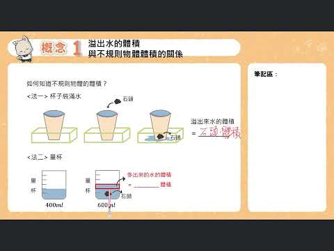 載入中... 相關課程 Back 五下 單元3 11 概念1 溢出水的體積與不規則物體體積的關係 相關課程 0 / 750 登入觀看 ⇐ Use this menu to view and help create subtitles for this video in many different languages. You'll probably want to hide YouTube's captions if using these subtitles. 五下 單元3 11 概念1 溢出水的體積與不規則物體體積的關係 上傳學習單 下載學習單
