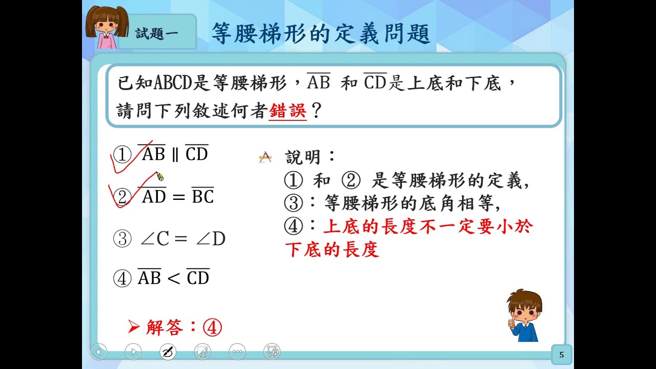 載入中... 相關課程 Back S-8-11-S02_能理解等腰梯形及其底角相等。 相關課程 0 / 750 登入觀看 ⇐ Use this menu to view and help create subtitles for this video in many different languages. You'll probably want to hide YouTube's captions if using these subtitles. S-8-11-S02_能理解等腰梯形及其底角相等。 上傳學習單 下載學習單
