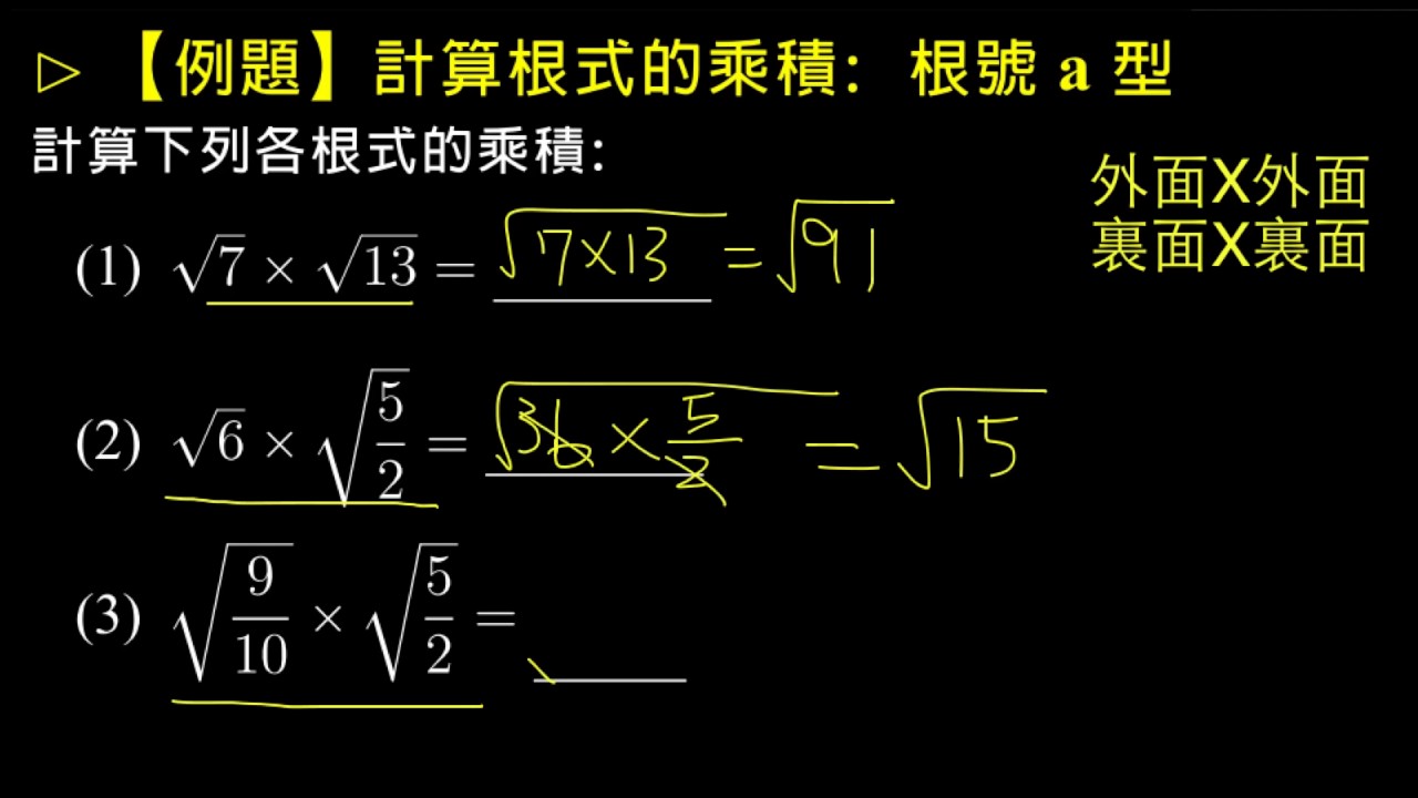 載入中... 相關課程 Back 【例題】根式的乘法 1 相關課程 0 / 750 登入觀看 ⇐ Use this menu to view and help create subtitles for this video in many different languages. You'll probably want to hide YouTube's captions if using these subtitles. 【例題】根式的乘法 1 上傳學習單 下載學習單